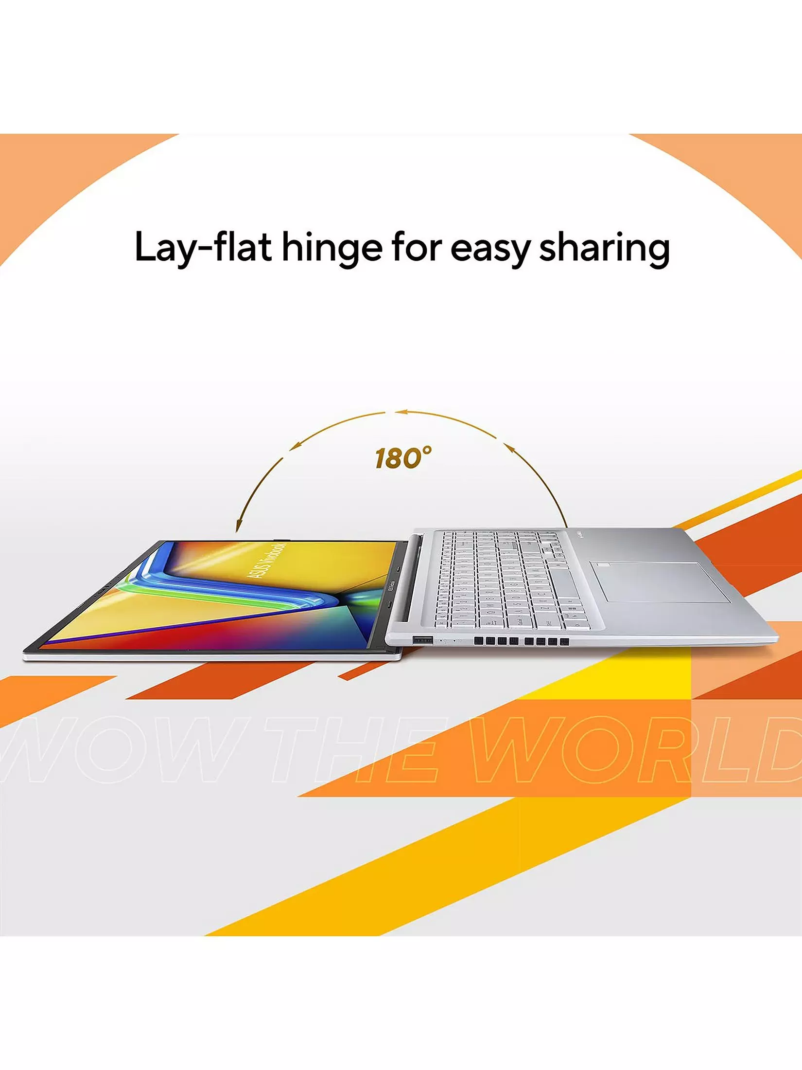 - The 180° lay-flat hinge makes it so much easier when you want to share stuff with those around you, too